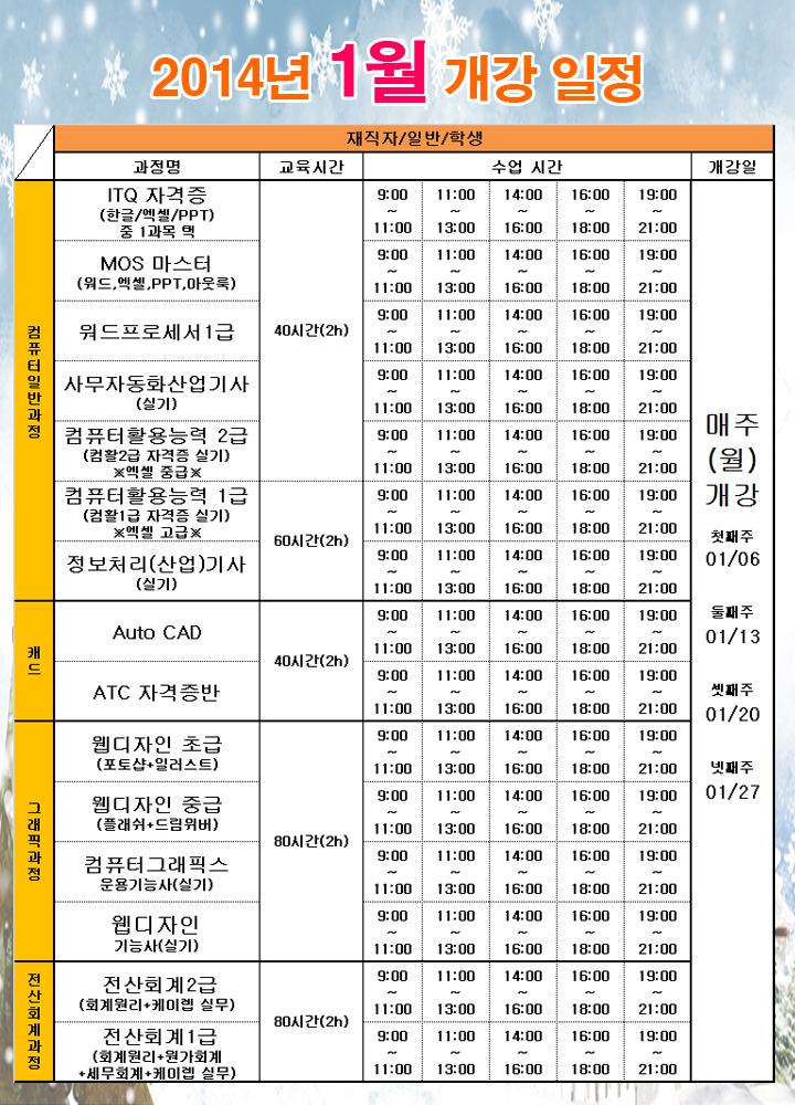 [정규개강]2014년 1월 정규강의 일정 안내입니다.